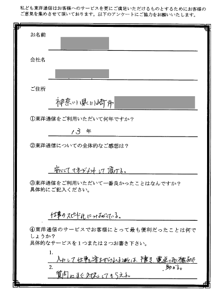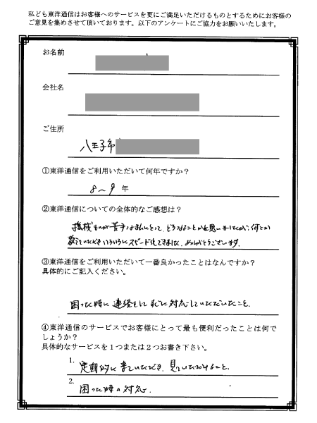株式会社東洋通信 個人情報お問い合わせ担当窓口