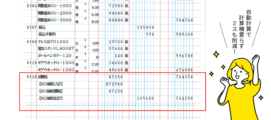 電卓計算が無くなることで事務員さんの負担とストレスも軽減され、効率的に元帳作成が出来ます!