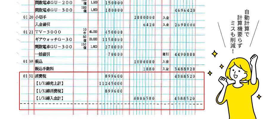 電卓計算が無くなることで事務員さんの負担とストレスも軽減され、効率的に元帳作成が出来ます!