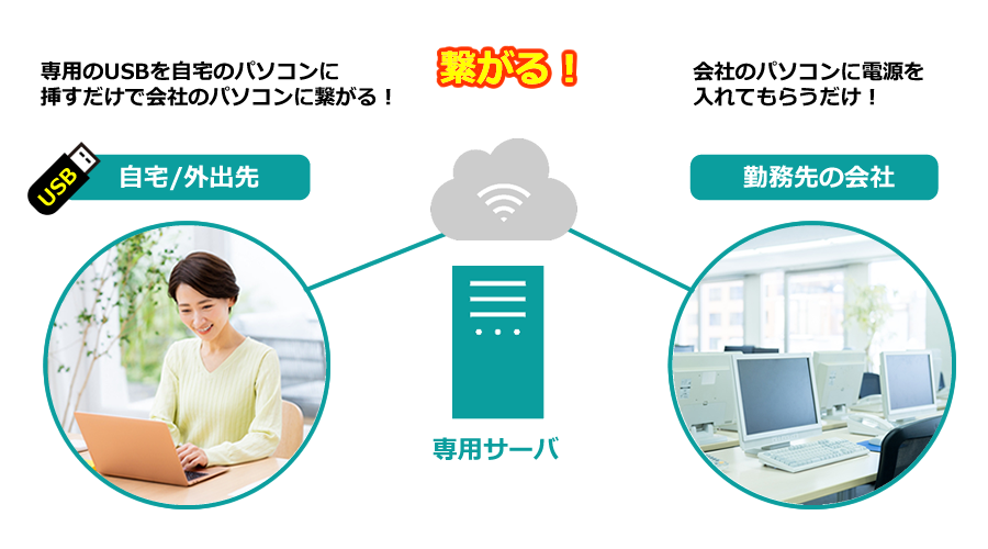 自分のパソコンに専用のUSBを挿すだけで、自宅でも、事務のお仕事がサクサク出来るようになるので、