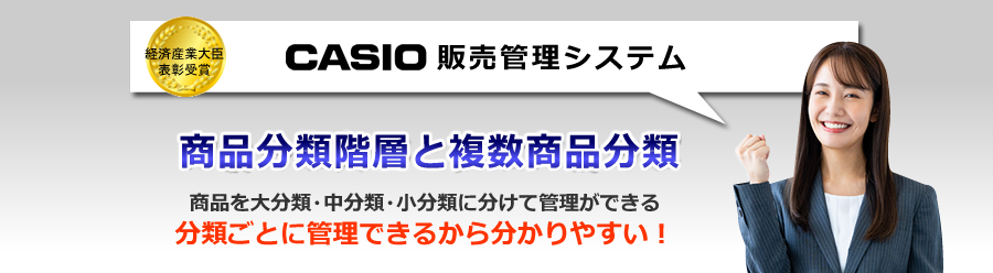 商品を大中小の3階層に分類できます。例えば、大分類で「家電」更に中分類で